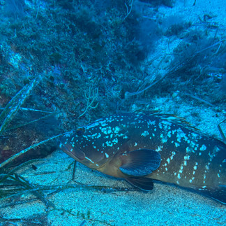 virage du tombant Est. Un mérou brun. la calanque sombre (côté nord)
